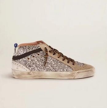 Top Phụ Nữ/Người Đàn Ông Giữa Sao Thiết Kế Mùa Đông Ren-up Da Chính Hãng Giản Dị Giày Thể Thao Long Lanh Bạc Vàng Handmade Thể Thao Xu Hướng Thời Trang